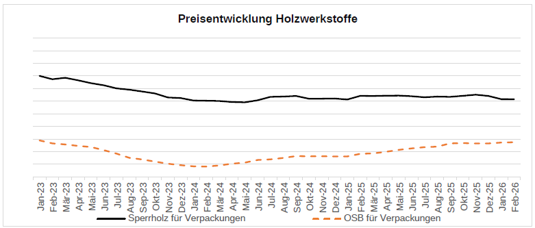 Der Preisindex für Schnittholz und Holzwerkstoffe für Holzpackmittel und Paletten wird durch den Bundesverband Holzpackmittel – Paletten – Exportverpackung (HPE) e.V. in Zusammenarbeit mit der Rheinischen Friedrich – Wilhelms – Universität, Bonn, ermittelt. Zum Januar 2026 wurde der Preisindex auf einhundert Basispunkte reskaliert. Dieses auch in der amtlichen Statistik gängige und regelmäßige Verfahren verbessert Übersichtlichkeit, Lesbarkeit und Verständlichkeit des Index. Veränderungen im Warenkorb oder der Verkettung wurden nicht vorgenommen, wodurch die langfristige Vergleichbarkeit vollumfänglich erhalten bleibt.