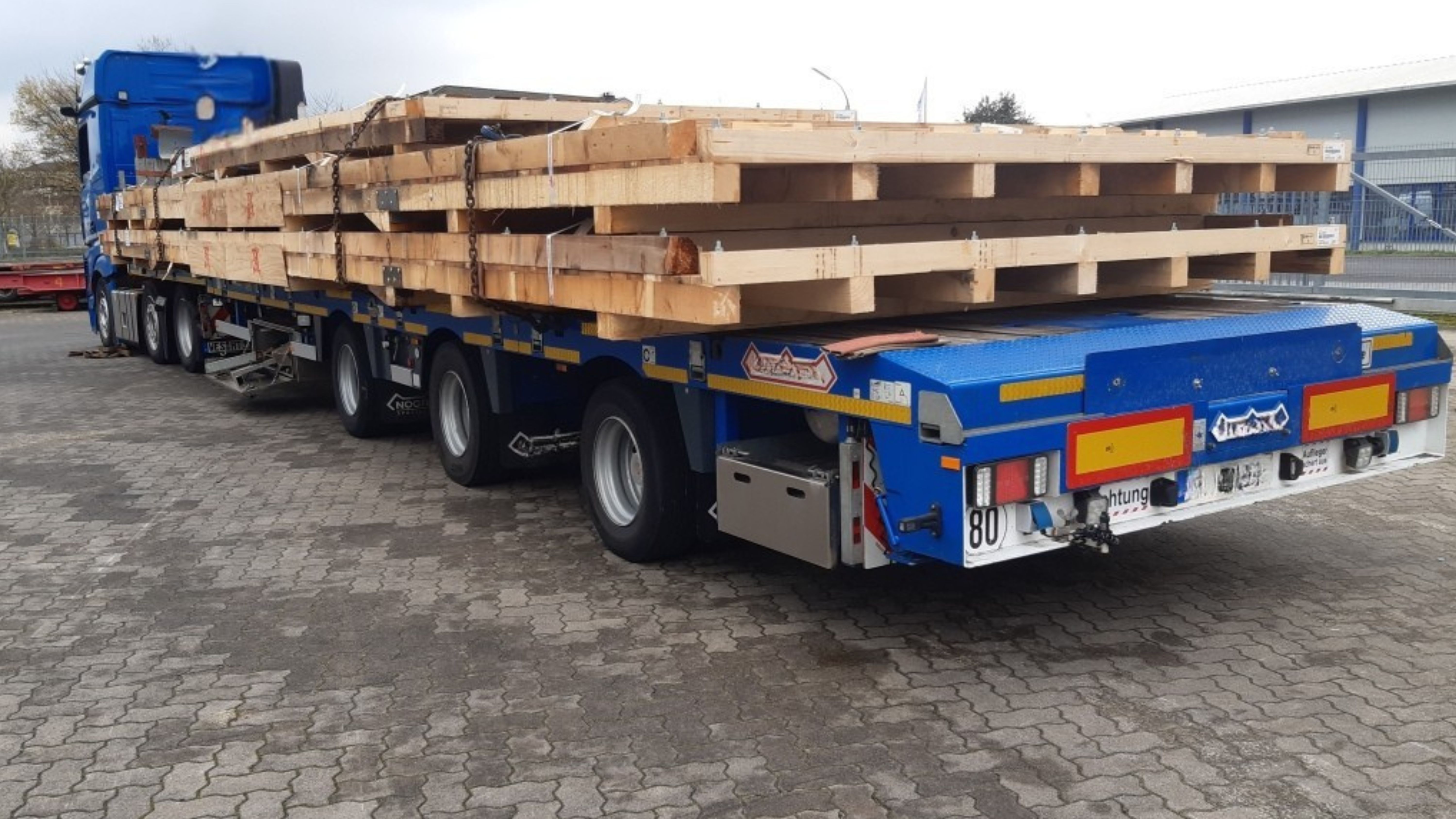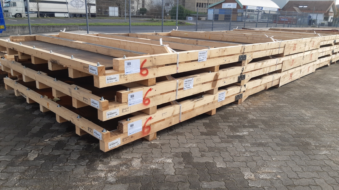 Rund 30 individuell angefertigte Transportböden wurden für das Projekt entwickelt und mussten exakt auf Maße und Gewicht der einzelnen Stahlplatten abgestimmt werden. Entscheidend war dabei nicht nur die Tragfähigkeit des Holzes, sondern auch die Konstruktion: Die Transportböden mussten so gestaltet sein, dass sie sich im Flugzeug beliebig übereinander stapeln lassen, ohne die darunterliegenden Platten zu belasten und die Ladungssicherung für den Transport gewährleistet war. Eine weitere Herausforderung war, dass sich die Böden samt Stahlplatten beim Anheben nicht verbiegen durften. „Wir mussten den Sweet-Spot für die vier Anschlagpunkte der Kranseile berechnen“ so Stockhausen. „Wir bewegen uns hier im Bereich weniger Zentimeter Toleranz. Das ist echte Präzisionsarbeit. Am Ende entscheidet die richtige Positionierung der Anschlagpunkte darüber, ob die Ware unbeschadet ankommt."